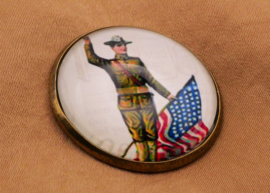 WWI Doughboy American Flag Vintage Illustration Glass Metal Button 28mm