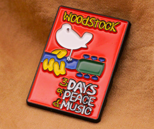 Woodstock Poster Peace and Music Bird Guitar Enamel Metal Large Button 23x33mm