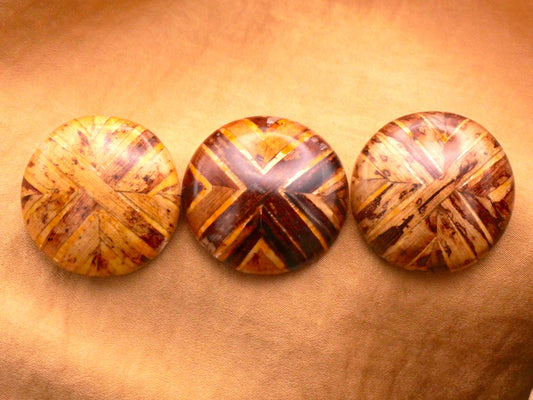 Wood Veneer Cross Design Parquet Look Under Resin Vintage Button 27mm
