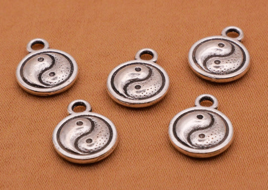 Yin-Yang Paisley Silver Metal Set of Five Charms Embellishments 10x13mm