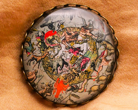 Zodiac Constellation Celestial Map Glass Dome Bronze Metal Button Various 31mm
