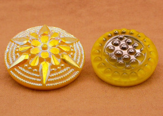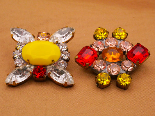Yellow Orange Czech Glass Rhinestone Vintage Metal Button Various 32-35mm