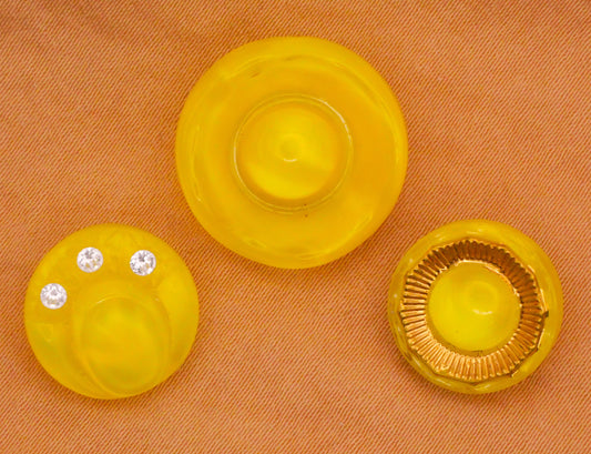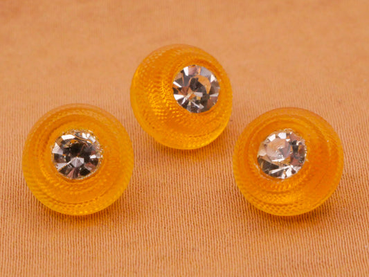 Yellow Mustard Rhinestone Vintage Glass Button 11mm