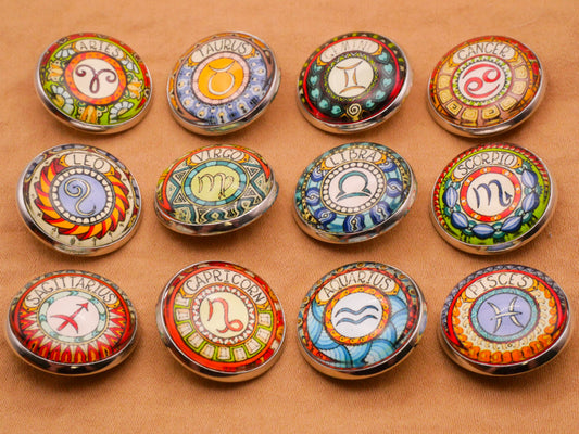 Zodiac Astrology Glass Buttons Various Signs 26mm