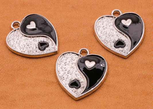Yin Yang Heart Silver Gold Metal Set of Three Charms Embellishments 15x17mm