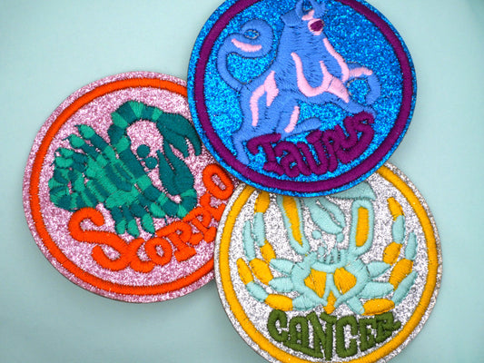 Zodiac Sign Patch Glitter Bright Colors Embroidery Patches 71mm
