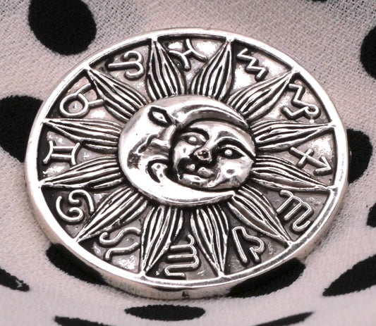 Zodiac Signs Sun Moon Silver Metal Button 25mm