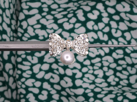 Bow Rhinestone Pearl Silver Metal Button 15x19mm