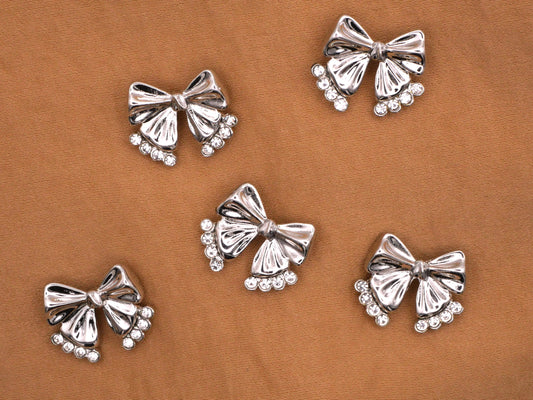 Bow Button Rhinestone Silver Gold 15x18mm