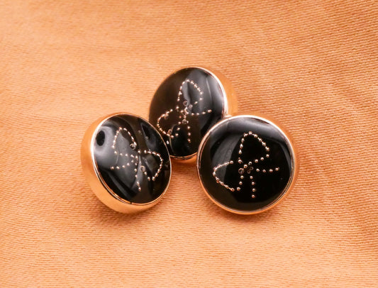 Bow Black Enamel Gold Chain Button 25mm