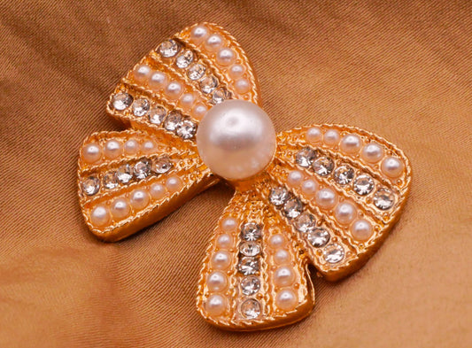 Bow Rhinestone Pearl Gold Metal Large Button 25x35mm