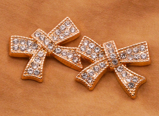Bow Rhinestone Gold Metal Button 18x25mm