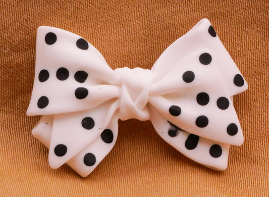 Bow Polka Dot White Black Plastic Pair of Buttons 20x30mm