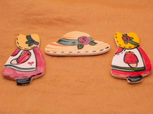Bonnet Girl Hat Hand-Painted Ceramic Button Various 20-40mm