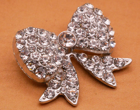 Bow Fashion Rhinestone Silver Metal Large Button 34x39mm