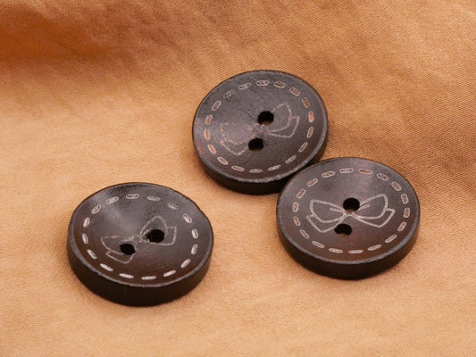 Bow Stitch Engraved Wood Sew-Thru Set of Five Buttons 20mm