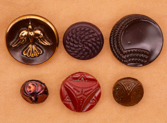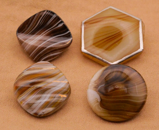 Brown Caramel Dig Dug Design in Glass Vintage Button Various 16-23mm