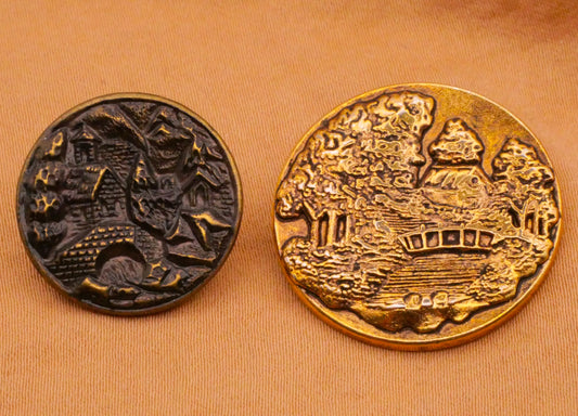 Bridge House Landscape Scene Metal Button Various 15-25mm