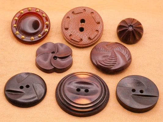 Brown Vintage Early Plastic Button Various 15-27mm