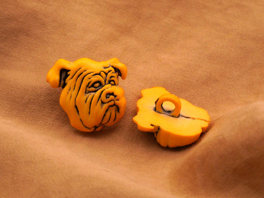 Bulldog Grumpy Face Dog Mustard Yellow Plastic Button 18x19mm