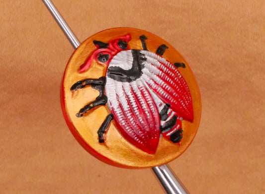 Bug Insect Czech Glass Red Gold Black White Button 18mm