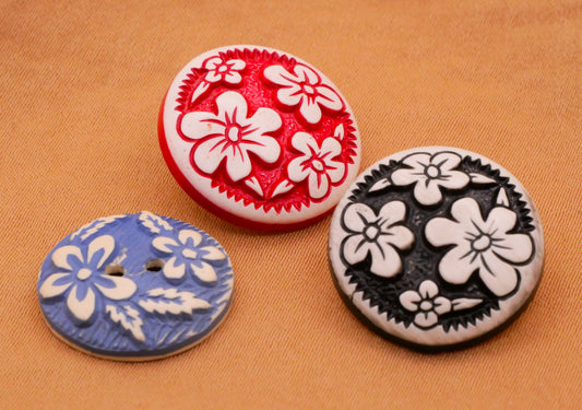 Buffed Look Red Blue Vintage Plastic Button 25-31mm