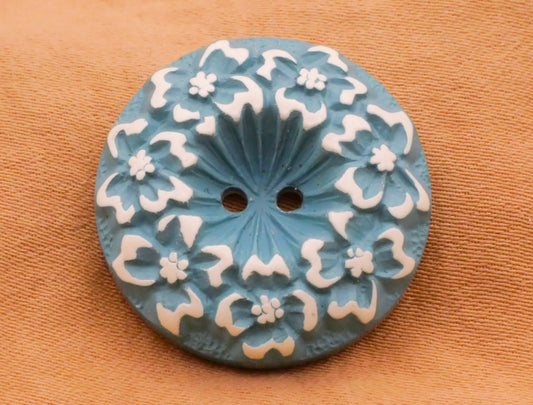 Buffed Celluloid Blue Flower Pink Bubble Early Plastic Button Various 22-23mm