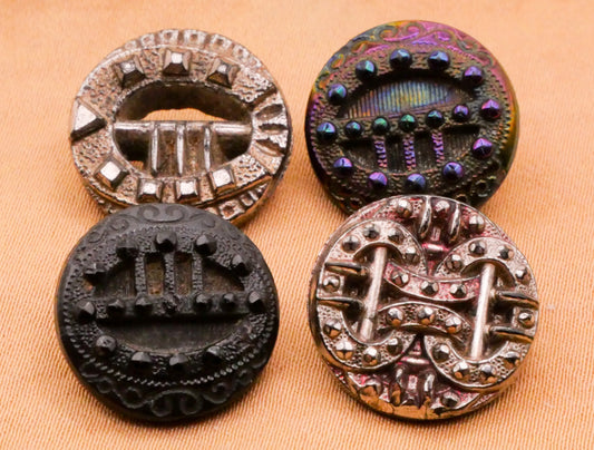 Buckle Black Glass Silver Iridescent Vintage Button Various 16-17mm