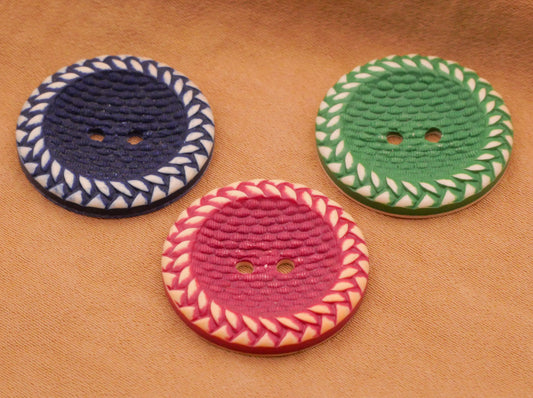 Buffed Celluloid Braided Rope Edge Blue Pink Green Early Plastic Various 22mm