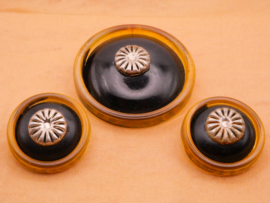 Bubble Transparent Black Metal Look Celluloid Early Plastic Button Various 27-42mm