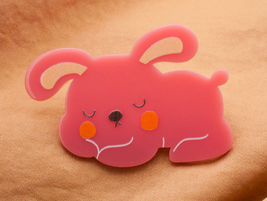 Bunny Rabbit Sleeping Pink Acrylic Large Button 26x53mm