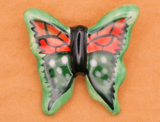 Butterfly Green Orange Large Hand-Painted Ceramic WW Studio Button 35x36mm