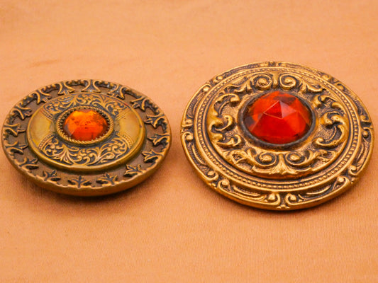Burnt Orange Filigree Victorian Jewel Gay 90s Brass Metal Large Button Various 38-44mm