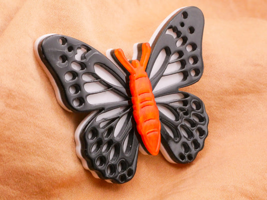 Butterfly Black White Amber Large Acrylic Plastic Button 44x52mm