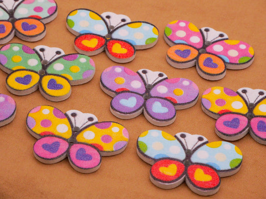 Butterfly Insect Polka Dot Heart Wings Wood Set of Ten Buttons 20x30mm