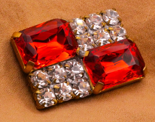 Burnt Orange Rectangle Vintage Czech Rhinestone Metal Button 19x27mm