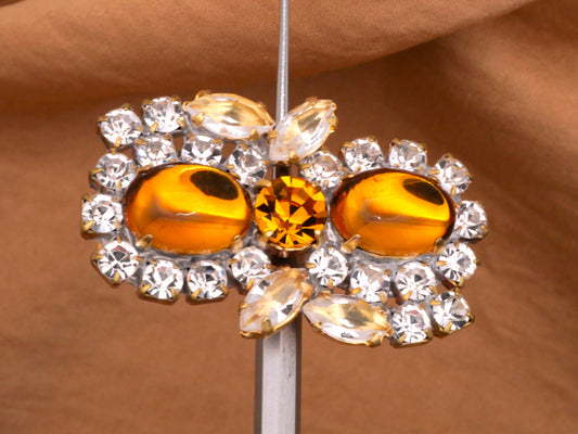 Amber Champagne Czech Glass Rhinestone Vintage Infinity Button 28x45mm