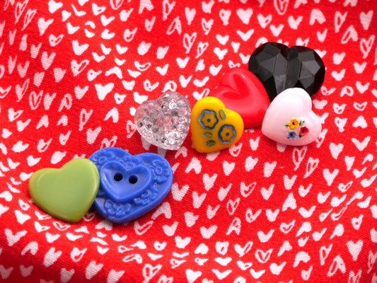 All Hearts Glass Set of Seven Buttons 11-18mm