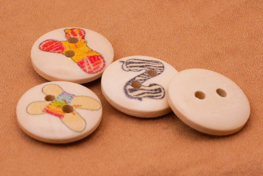 Alphabet Letters Illustrations Wood Set of Twenty-Six Buttons 15mm