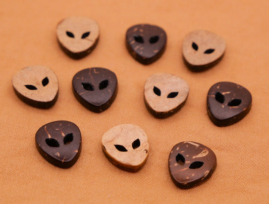 Alien Face Sew-Thru Coconut Shell Set of Ten Buttons 10x11mm