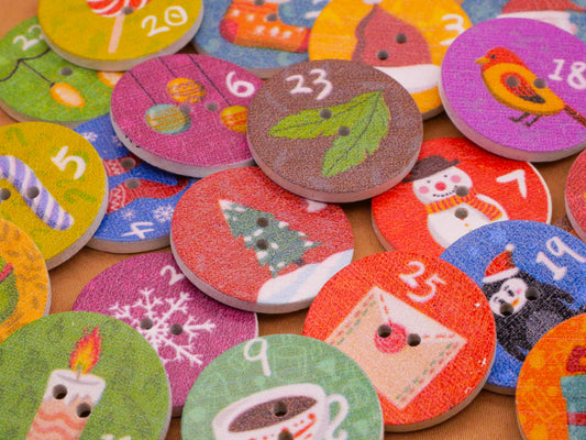 Advent Calendar Christmas Countdown Wood Set of Twenty-Five Buttons 25mm
