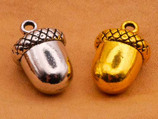 Acorn Silver or Gold Metal Charm Embellishment 11x17mm
