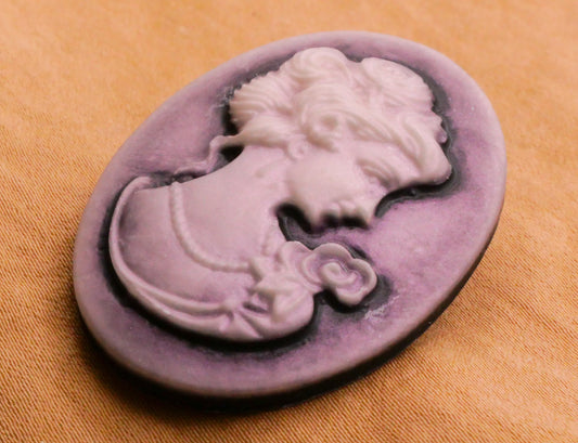 Cameo Purple Lady Portrait Flower Large Resin Plastic Button 29x39mm