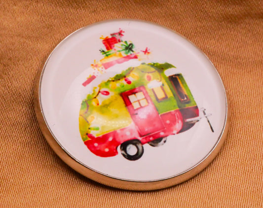Camper Christmas Red Green Glass Dome Silver Metal Button 27mm