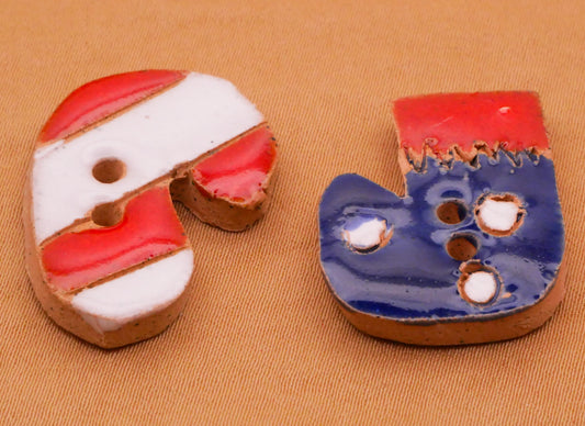 Candy Cane Stocking Handmade Glaze Ceramic Button Various 19-26mm