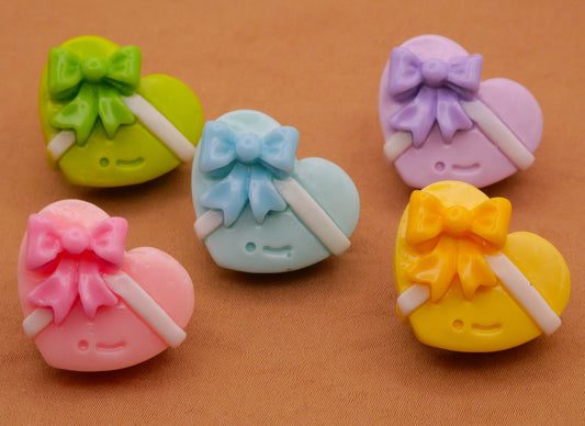 Candy Box Valentine Heart Bow Plastic Assorted Set of Four Buttons 17x23mm