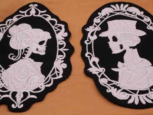 Cameo Skeleton Skull Couple Embroidered Pair of Patches Embellishments 75-121mm