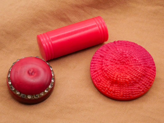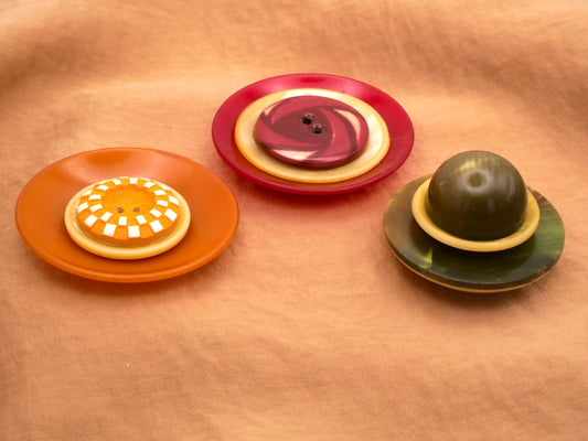 Celluloid Early Plastic Stack Set of Three Various Yellow Red Green 22-49mm
