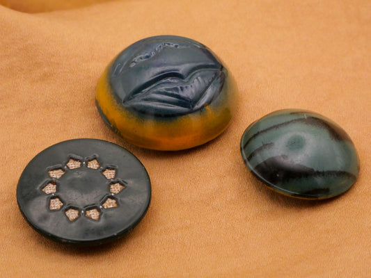 Celluloid Early Plastic Bubble Tight Top Navy Blue Set of Three Buttons 18-37mm