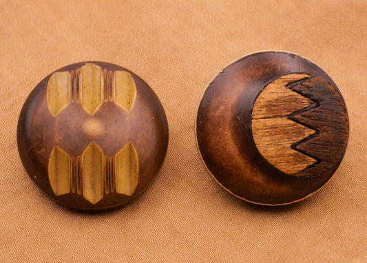 Celluloid Carved Wood Inlay Brown Early Plastic Vintage Button Various 25mm